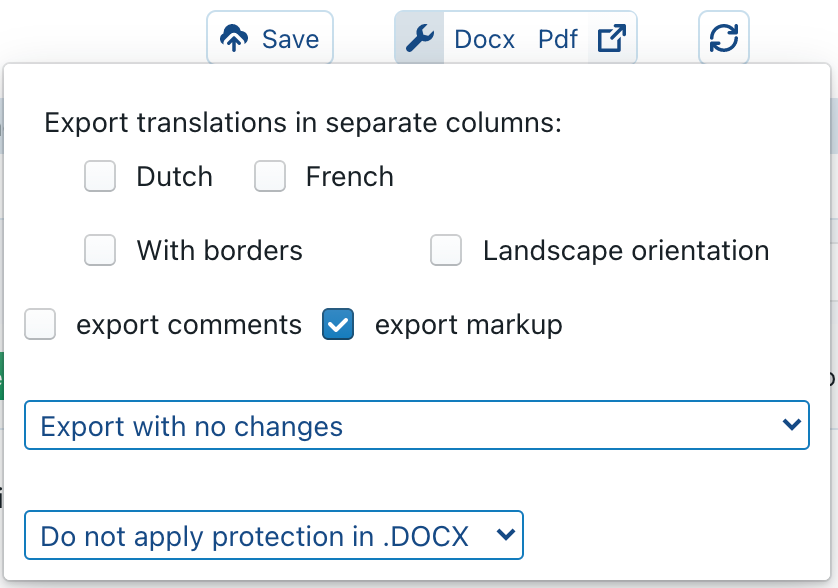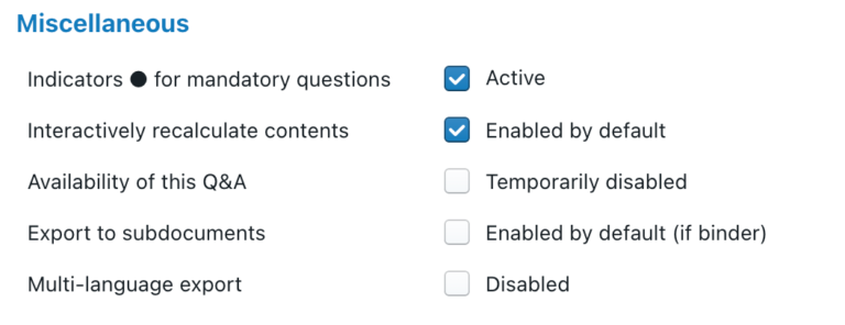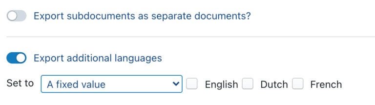 If you want to completely disable the possibility for the end-user to export multiple languages, you can instead check the *Multi-language export* option at the bottom of the options panel of the Q\&A.