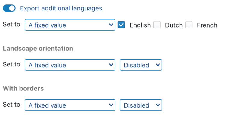 When at least one extra language is checked, you can also specify dynamically the orientation and the optional borders between columns: