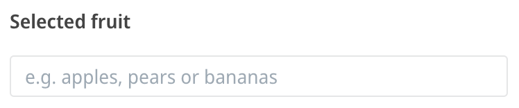 Text questions can optionally receive an *answer hint*, i.e. a text in a subtle grey color that will be shown inside the text box to guide the user’s answer. As soon as the end-user starts typing an answer, the placeholder text will disappear (and will not re-appear until all text would be deleted).